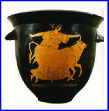 Aquesta ceràmica representa el mite del rapte d' Europa.